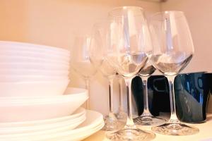 The apartment includes two bathrooms equipped with hairdryers as well as toiletries such as shampoo and body soap. Inside, guests will find a fully equipped kitchen featuring a stovetop, refrigerator, dishwasher and microwave for convenient meal preparation. Additional room amenities include a washing machine, iron, work desk, heating, air conditioning along with towels and bed linen supplied for comfort.