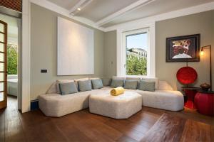 This soundproofed unit accommodates two beds across two bedrooms alongside two private bathrooms fitted with walk-in showers and bidets. Guests can enjoy numerous in-room amenities including bed linen, towels, slippers, an iron with ironing board, a washing machine, sofa seating area, work desk, wardrobe space, heating, hardwood flooring as well as non-feather and feather pillows.