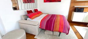 Ubytování zahrnuje samostatnou ložnici a obývací pokoj vybavený dvěma lůžky včetně rozkládací pohovky. Součástí jsou pracovní stůl a posezení na dřevěné parketové podlaze. Plně zařízený kuchyňský kout obsahuje kuchyňské potřeby, rychlovarnou konvici, ledničku, mikrovlnnou troubu, varnou desku i kávovar spolu s možností přípravy čaje i kávy a jídelní stůl.