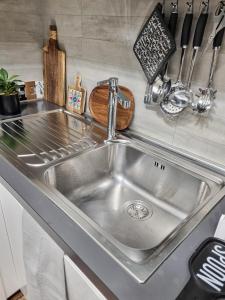 L’appartamento dispone di una camera da letto oltre a un soggiorno arredato con divano letto e zona relax. Gli ospiti possono usufruire in totale di due posti letto mentre l’angolo cottura completamente attrezzato comprende forno, piano cottura, frigorifero, lavastoviglie, microonde, tostapane, bollitore elettrico e tutte le stoviglie essenziali per la preparazione dei pasti. Il bagno offre la possibilità di scegliere tra doccia o vasca da bagno, sono inoltre forniti accappatoi insieme ai prodotti da toilette quali shampoo e balsamo.