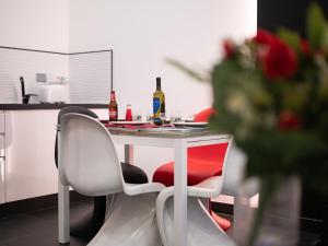 Each apartment comprises a living room with a sofa bed, one separate bedroom, and a private bathroom equipped with complimentary toiletries such as body soap, shampoo, bathrobes, hairdryer, bidet, shower or bathtub options. Guests can prepare meals in well-equipped kitchens that include an oven, stovetop, refrigerator, microwave toaster as well as tea and coffee making facilities. Additional room amenities consist of heating systems, individually controlled air conditioning units for each room alongside wardrobes or closets.