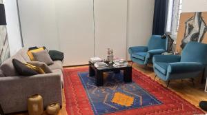 Inside the studio, guests will find two beds along with air conditioning and heating for comfort throughout the year. The well-equipped kitchen boasts a stovetop, oven, microwave, refrigerator, dishwasher, coffee machine, electric kettle as well as tea and coffee making facilities accompanied by kitchenware and a dining table. Additional amenities include a washing machine, iron, clothes drying rack, sofa bed seating area with hardwood flooring and bedside sockets.