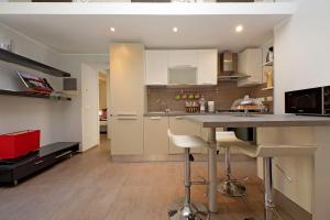 Ubytování sestává z obývacího pokoje, samostatné ložnice a koupelny vybavené sprchovým koutem a bidetem. Plně vybavený kuchyňský kout obsahuje troubu, varnou desku, lednici, myčku nádobí, mikrovlnnou troubu, toustovač i kávovar a rychlovarnou konvici. Další vybavení v pokojích zahrnuje televizor s plochou obrazovkou, pračku, žehličku s žehlícím prknem, sušák na prádlo, posezení s rozkládací pohovkou a pracovní stůl. Ložní prádlo i ručníky jsou zajištěny spolu s polštáři bez peří pro větší komfort.