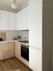 Das Apartment verfügt über zwei separate Schlafzimmer und ein Wohnzimmer mit einem Flachbildfernseher inklusive Kabel-TV und Streaming-Diensten. Die voll ausgestattete Küche umfasst moderne Geräte wie Backofen, Herdplatte, Kühlschrank, Geschirrspüler, Toaster, Kaffeemaschine und Wasserkocher sowie Küchenutensilien für eine komfortable Zubereitung von Mahlzeiten.