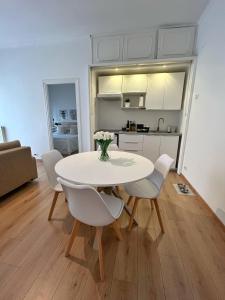 L’alloggio comprende una camera da letto e un soggiorno con due posti letto, inclusi divano letto, oltre a un bagno privato dotato di doccia, bidet, asciugacapelli, sapone per il corpo e servizi igienici con opzioni vasca o doccia. L’angolo cottura è completamente attrezzato con frigorifero, piano cottura e accessori per tè e caffè per preparare i pasti comodamente nell’appartamento.