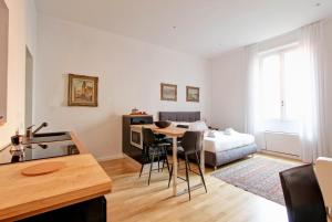 The air-conditioned accommodation comprises one bedroom with one bed and one bathroom featuring a shower and bidet. Guests can enjoy a fully equipped kitchen complete with an oven, stovetop, dishwasher, refrigerator, microwave, electric kettle, coffee machine as well as kitchenware. Additional room amenities include a washing machine, ironing facilities including iron and board, towels and bed linen along with heating.