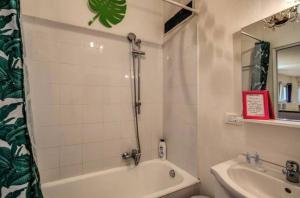 Accommodation consists of one separate bedroom and a living room featuring two beds, complemented by an en suite bathroom with both bathtub and shower facilities as well as a hairdryer. The fully equipped kitchen provides modern conveniences including a stovetop, oven, refrigerator, dishwasher, coffee machine, electric kettle, tea and coffee making facilities, kitchenware and a dining table for guest use.