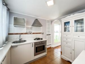 Tento klimatizovaný apartmán zahrnuje samostatnou ložnici a obývací pokoj s rozkládací pohovkou a posezením na dřevěné podlaze. Kuchyňský kout disponuje troubou, varnou deskou, lednicí, kávovarem, rychlovarnou konvicí i přípravou čaje a kávy doplněnými kuchyňským nádobím a jídelním stolem.