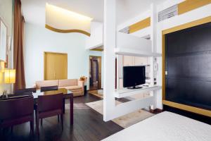 Each room comes equipped with air conditioning and heating systems that can be individually controlled. Guests will find sofas or sofa beds along with seating areas and work desks. The accommodations feature hardwood floors, wardrobes or closets, safety deposit boxes, baby cots upon request, towels, and flat-screen TVs with satellite channels.
