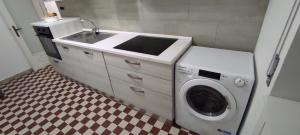 Guests can enjoy the fully equipped kitchen featuring kitchenware alongside modern appliances like a stovetop, refrigerator, dishwasher, oven and microwave plus dining table facilities. Additional conveniences include laundry options with washing machine and tumble dryer available within the apartment itself. The building offers lift access to upper floors ensuring ease of movement.