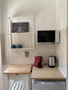Die Kochnische ist mit Kochgeschirr ausgestattet und bietet Tee- und Kaffeezubereitungsmöglichkeiten einschließlich Wasserkocher und Kaffeemaschine sowie Mikrowelle und Kühlschrank. Ein Essbereich ist ebenfalls vorhanden. Das private Bad verfügt über kostenfreie Pflegeprodukte wie Duschgel sowie Dusche und Badewanne, zusätzlich sind Bidet und Haartrockner vorhanden. Kostenloses WLAN steht in der gesamten Unterkunft zur Verfügung. Der Zugang zu den oberen Etagen erfolgt ausschließlich über Treppen.