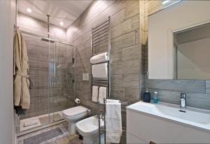 Accommodation features two bedrooms and three bathrooms equipped with showers and bidets for convenience. Guests will appreciate the fully equipped kitchen that includes an oven, stovetop, dishwasher, microwave, refrigerator as well as coffee machine and electric kettle. Additional in-room amenities comprise a flat-screen TV with streaming services, washing machine, safety deposit box, ironing facilities including iron and board, work desk, sofa bed, baby cot or crib options along with linens such as towels and non-feather pillows.
