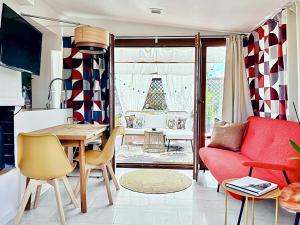 Situato a Roma, il delizioso appartamento in stile metà secolo con splendida terrazza offre un alloggio elegante in monolocale dotato di aria condizionata e WiFi gratuito. Questo appartamento vanta una vista tranquilla sulla città e su una strada silenziosa dalla sua terrazza, regalando agli ospiti un rifugio sereno. Dispone di una camera da letto e combina comfort moderni con il fascino del design mid-century.