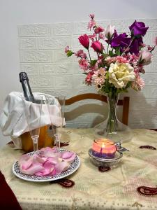 The apartment features one bedroom with one bed and a private bathroom equipped with a shower, bathtub or shower options, bidet, additional toilet, hairdryer, body soap, shampoo and complimentary toiletries. Guests have access to ironing facilities including an iron and ironing board as well as a clothes drying rack and heating throughout. The living space includes tile or marble flooring along with non-feather synthetic pillows as well as feather pillows for sleeping comfort.