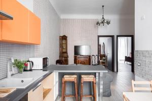 Die Unterkunft verfügt über zwei separate Schlafzimmer, ein Wohnzimmer mit Sitzbereich einschließlich Sofa sowie ein privates Badezimmer mit Dusche oder Badewanne, Bidet, Haartrockner, Shampoo, kostenfreien Pflegeprodukten und WC-Anlagen. Die voll ausgestattete Küche beinhaltet Herdplatte, Backofen, Mikrowelle, Kühlschrank, Toaster, Wasserkocher sowie Kaffeemaschine und Teezubereitungsmöglichkeiten sowie Küchenutensilien zur komfortablen Zubereitung von Mahlzeiten. Weitere Ausstattungsmerkmale im Zimmer sind schallisolierte Räume, Fliesen- oder Marmorbodenbelag, Bettwäsche und Handtücher, Bügeleisen und Wäscheständer sowie Waschmaschine, Heizung, Klimaanlage , Flachbildfernseher , Steckdose am Bettplatz und Internetzugang.