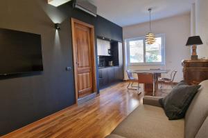 Inside, guests will find one bedroom alongside a living room furnished with two beds and a sofa bed. The fully equipped kitchen features modern appliances such as a stovetop, refrigerator, dishwasher, microwave, coffee machine, toaster and electric kettle. Other in-room amenities include heating, air conditioning, ironing facilities with an iron and ironing board, bed linens, towels, a washing machine with tumble dryer function for clothes drying rack use as well as hardwood flooring.