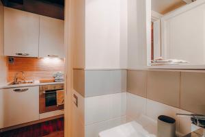The apartment features one bedroom furnished with parquet floors and a wardrobe closet. The kitchen comes fully equipped with an oven, stovetop, refrigerator, electric kettle and dining table to cater to your cooking needs. The bathroom contains a shower combined with bathtub options, bidet, toilet facilities as well as body soap and a hairdryer. Bed linen along with towels are provided for added convenience.