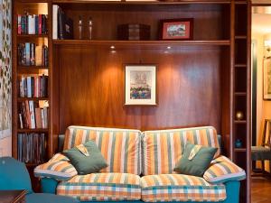Plně vybavená kuchyň obsahuje nádobí a spotřebiče jako troubu, varnou desku, mikrovlnnou troubu, toustovač, ledničku, myčku nádobí i kávovar s čajovým příslušenstvím spolu s jídelním stolem. Zábavu zajišťuje televizor s plochou obrazovkou se satelitními kanály plus CD přehrávačem rádia, internetové služby zahrnují WiFi dostupné všude i přenosný Wi-Fi hotspot. Mezi další vybavení patří soukromé odbavení při příjezdu/odjezdu, garážové parkování, detektor kouře i oxidu uhelnatého, sluneční terasa se zahradním nábytkem v klidné ulici s výhledem na památky, dále pračka župany fén bidet budík vytápění individuálně ovládaná klimatizace dětská postýlka sedačka venkovní posezení na balkoně či terase expresní odbavení horní patra přístupná pouze po schodech.