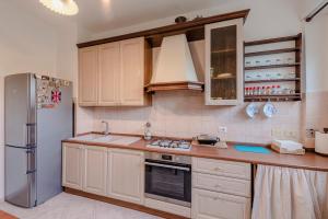 This spacious apartment comprises two separate bedrooms, a living room, and one bathroom equipped with a shower and bidet. Guests can enjoy three beds in total along with amenities such as a flat-screen TV featuring satellite channels, air conditioning, heating, a washing machine, and seating area. A fully equipped kitchen includes an oven, stovetop, refrigerator, coffee machine, dining table, and kitchenware to cover all cooking needs.