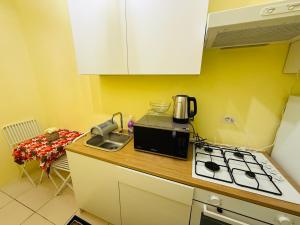 Das Apartment im Erdgeschoss verfügt über zwei Betten sowie Klimaanlage und Heizung für Komfort. Zur Ausstattung gehören ein Flachbildfernseher und kostenfreies WLAN im gesamten Objekt. Die voll ausgestattete Küche umfasst einen Kühlschrank, eine Mikrowelle, eine Kochnische, einen Esstisch, Kochgeschirr sowie einen Wasserkocher.