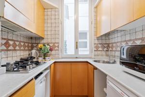 This one-bedroom apartment includes one private bathroom equipped with a bidet, shower, hairdryer, complimentary toiletries, body soap and toilet facilities. Guests benefit from individually controlled air conditioning along with heating. The living area features hardwood flooring alongside seating options such as a sofa. Additional room amenities include an ironing board and iron, non-feather pillows, towels and bed linen.