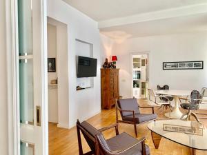 Die geräumige Wohnung verfügt über ein Wohnzimmer, zwei separate Schlafzimmer sowie zwei Badezimmer mit Dusche, Bidet, Toilette, Badewanne oder Dusche, kostenlosen Pflegeprodukten und privaten Sanitäreinrichtungen. Die voll ausgestattete Küche beinhaltet Herdplatte, Kühlschrank, Geschirrspüler, Backofen, Toaster, Wasserkocher sowie Küchenutensilien für den Speisebedarf. Zu den weiteren Annehmlichkeiten zählen Klimaanlage, Heizungssystem, Sofa-Sitzbereich, Schreibtisch zum Arbeiten sowie Kleiderschrank. Handtücher stehen bereit, zudem gibt es Bügeleisen inklusive Bügelbrett und eine Waschmaschine. Ein Babybett ist auf Anfrage verfügbar.