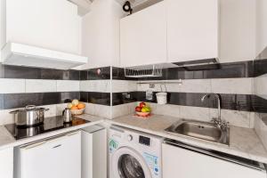 Inside the apartment, guests will find a flat-screen TV along with heating facilities and a washing machine for added comfort. The kitchenette provides space for cooking and storing food while the accommodation also offers a baby cot or crib if needed.
