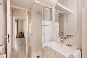 The spacious accommodation includes two bedrooms and one bathroom equipped with a shower and bidet. Guests will find three beds in total, as well as an air-conditioned living room featuring a seating area and flat-screen TV with streaming services. The fully equipped kitchen boasts modern appliances such as a stovetop, oven, microwave, dishwasher, refrigerator, coffee machine and electric kettle alongside kitchenware for preparing meals.