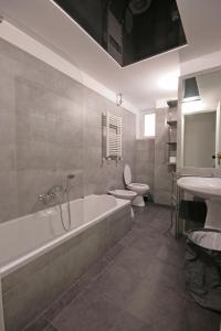 To wolne od alergenów i dla niepalących mieszkanie oferuje dobrze wyposażone pomieszczenia mieszkalne z trzema łóżkami w sypialniach oraz dwie łazienki wyposażone zarówno w wannę, jak i prysznic wraz z bidetami. W pełni wyposażony aneks kuchenny zawiera nowoczesne urządzenia takie jak piekarnik, płytę grzewczą, lodówkę, zmywarkę do naczyń, mikrofalówkę, toster oraz ekspres do kawy i zestaw do przygotowywania herbaty. Dodatkowe udogodnienia to klimatyzacja, ogrzewanie, sprzęt do prasowania (żelazko i deska), pościel i ręczniki, rozkładana sofa, szafa garderobiana oraz kącik wypoczynkowy. Apartament dysponuje także łóżeczkiem dziecięcym lub kołyską oraz podłogą wykończoną kaflami lub marmurem. Do dyspozycji są poduszki antyalergiczne bez pierza oraz telewizor z płaskim ekranem i kanałami kablowymi. Przy każdym łóżku znajdują się gniazdka elektryczne, cały obiekt jest przystosowany dla osób na wózkach inwalidzkich.