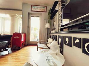 This air-conditioned apartment comprises one bedroom with two beds, a living room, and one bathroom equipped with a hot tub, spa bath, shower, bidet, toilet and hairdryer. The fully equipped kitchen features a stovetop, oven, microwave, dishwasher, refrigerator and coffee machine along with kitchenware and a dining table for convenient meal preparation.