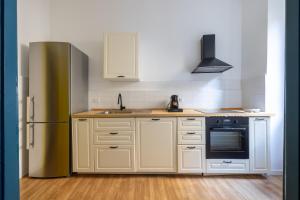 L’alloggio dispone di una camera da letto e un soggiorno separato arredato con due posti letto inclusi un divano letto, oltre ad angolo cottura completamente attrezzato con piano cottura, frigorifero, lavastoviglie, forno e tavolo da pranzo. Il bagno è dotato di set di cortesia gratuito, doccia e bidet. Tra i comfort aggiuntivi ci sono riscaldamento, ferro da stiro con asse da stiro, lavatrice, stendibiancheria, zona salotto, scrivania per il lavoro, cuscini anallergici in materiale non piuma d’oca, pavimenti in legno massello e asciugamani.